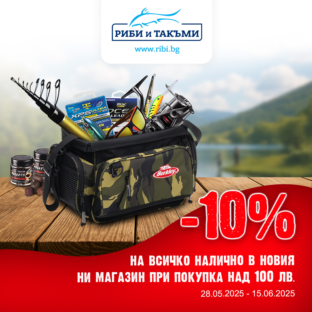 В новия ни магазин – вземи -10% отстъпка на всичко налично при покупка над 100 лв. Офертата важи само на място и само в новия магазин до 15.06.2025 – началото на риболовния сезон. Не пропускай!