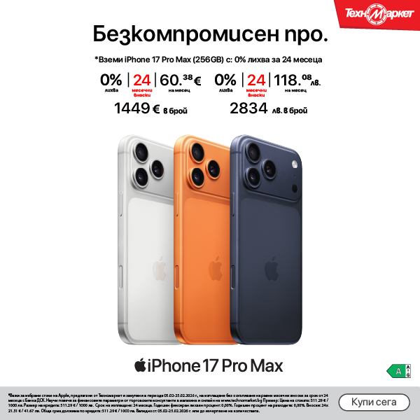 А всеки момент е запечатан перфектно с iPhone 17 Pro Max. Вземи най-търсеното Apple устройство на изплащане с 0% лихва за 24 месеца и подари технология от бъдещето на любимия си човек този Свети Валентин.